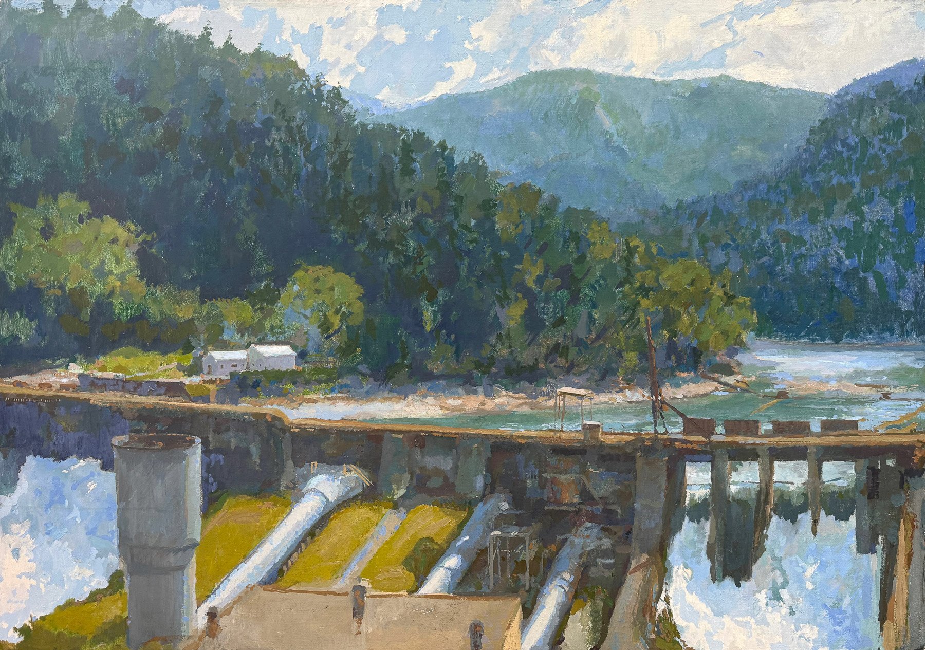Lower Elwha Dam During Removal, 26 x 40 inches, oil on linen, copyright 2011